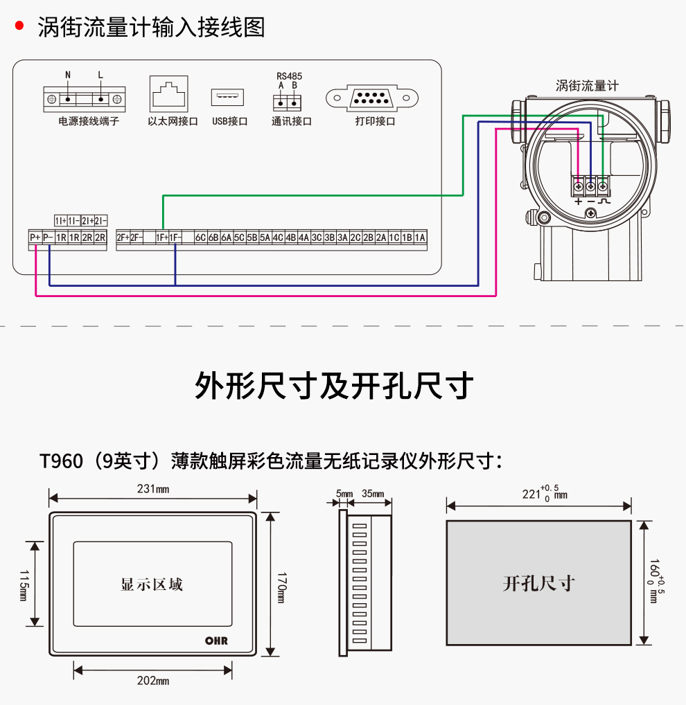 OHR-T系列薄款觸摸彩色流量無(wú)紙記錄儀