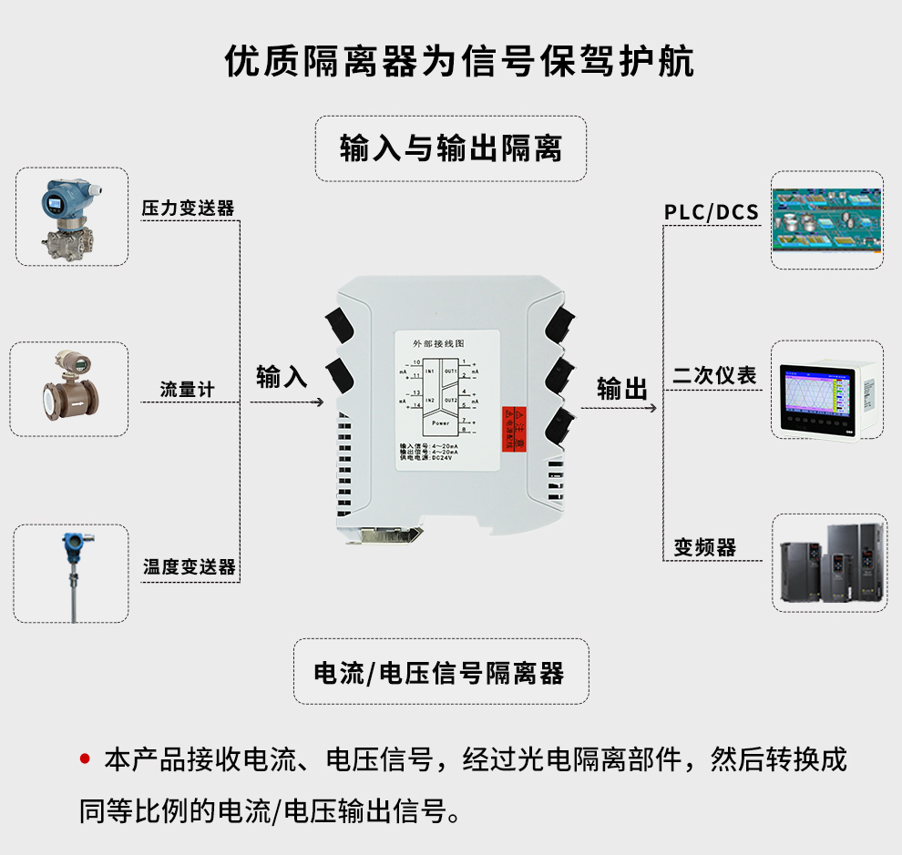 OHR-M31系列智能隔離器將直流電壓或電流信號經(jīng)過隔離傳送,轉(zhuǎn)換成所需的信號給其它儀表??梢耘c單元組合儀表及DCS、PLC等系統(tǒng)配套使用,給予現(xiàn)場儀表信號隔離、信號轉(zhuǎn)換、信號分配、信號處理等,從而提高工業(yè)生產(chǎn)過程自動控制系統(tǒng)的抗干擾能力,保證系統(tǒng)的穩(wěn)定性和可靠性。