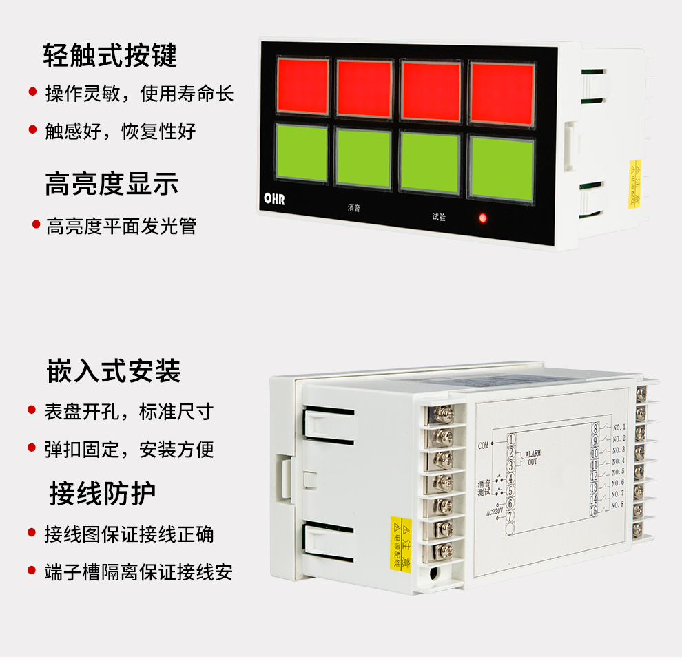 八路閃光報(bào)警器是一種接點(diǎn)式聲光報(bào)警顯示儀表,具有電路簡單、元件少、可靠性高、抗干擾能力強(qiáng)、低功耗、低噪聲、EMC電磁兼容等特點(diǎn),廣泛運(yùn)用于電力、石化、冶金、輕工、制藥、航空等諸多領(lǐng)域。